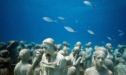 墨西哥的水族人 尽管关于亚特兰蒂斯的争议仍在继续,但在墨西哥加勒比海的水域中,却确实存在着一群水族人。不过,这些水族人并不是传说中的海底人,而是由人类创作的海底艺术品。这个艺术博物馆被创设在海底,目的是既满足人们对海底人类的好奇心,也为保护自然景观而设。博物馆内,数百座与真人相仿的雕像被安放在几十米深的海底,它们以各种栩栩如生的姿势排列,仿佛构成了一个神秘的水下城市,吸引着大量游客和潜水者前来探访。这些雕像不仅形态各异,令人感叹艺术的鬼斧神工,同时也为游客提供了与海洋深处亲密接触的机会。自2010年博物馆建成以来,这些雕像已在海底沉睡了十年,它们成为了当地旅游的一个独特景点,成为无数潜水者的心头之好。